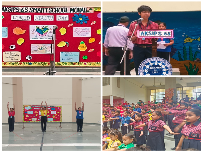 AKSIPS-65 celebrated the World Health Day with a mass PT drill session and a vibrant awareness workshop! Students from classes VI-XII learnt about healthy eating, stress management, and yoga, focussing on balanced lifestyles and mindfulness. Classes III-V enjoyed fun-filled races, while the Balvatika students gained insights into healthy eating habits. The Associate Director Parnika Singh and the Principal Rajminder Kaur Jaitla engaged with the students, discussing daily routines and food habits.