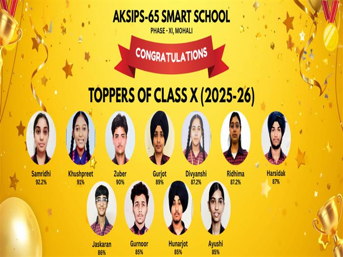 Students of AKSIPS-65 Smart School, Mohali brought laurels to the institution by achieving a 100% pass result in the Class X CBSE Board examination.